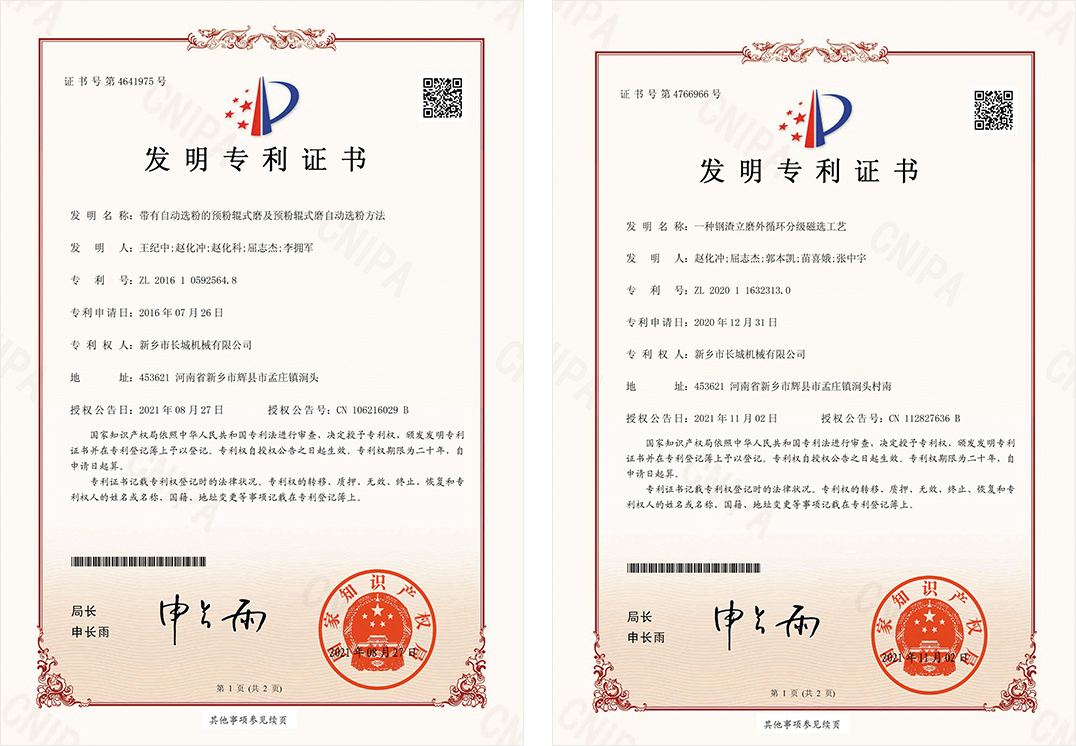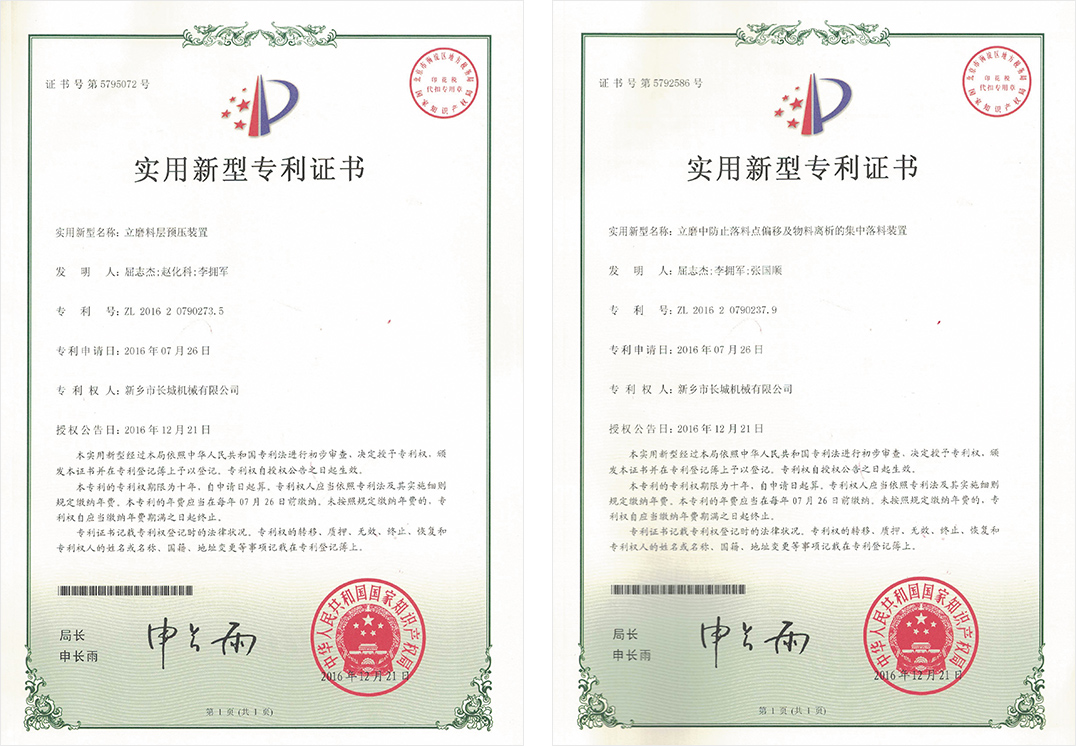 新鄉(xiāng)長城憑借豐富的生產(chǎn)經(jīng)驗、先進(jìn)的生產(chǎn)工藝和科學(xué)的管理體系,推動企業(yè)管理和技術(shù)創(chuàng)新,公司取得了發(fā)明專利2項,實用新型專利100余項,軟著權(quán)4項,60余年品牌知名度和美譽度不斷提升,礦渣立磨市場占有率穩(wěn)居前列。
