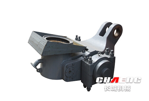 搖臂裝置主要由上搖臂、下?lián)u臂、搖臂軸、軸承及軸承座等部件組成。上搖臂用于安裝磨輥,下?lián)u臂連接液壓系統(tǒng),兩搖臂通過軸及錐套、錐銷連接成整體。