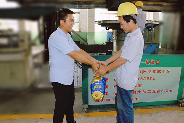 各車間、部門代表興高采烈地自覺排隊(duì)上前領(lǐng)取,呈現(xiàn)出一片溫馨和諧的景象。